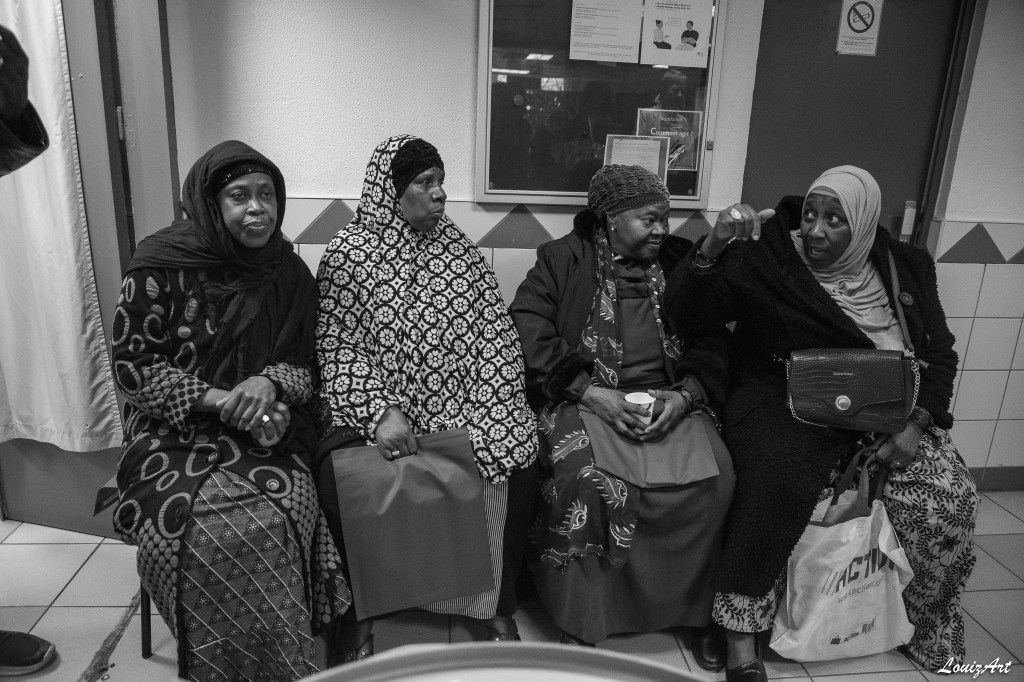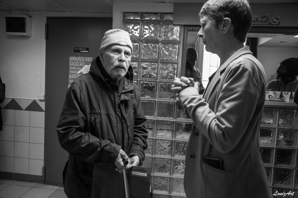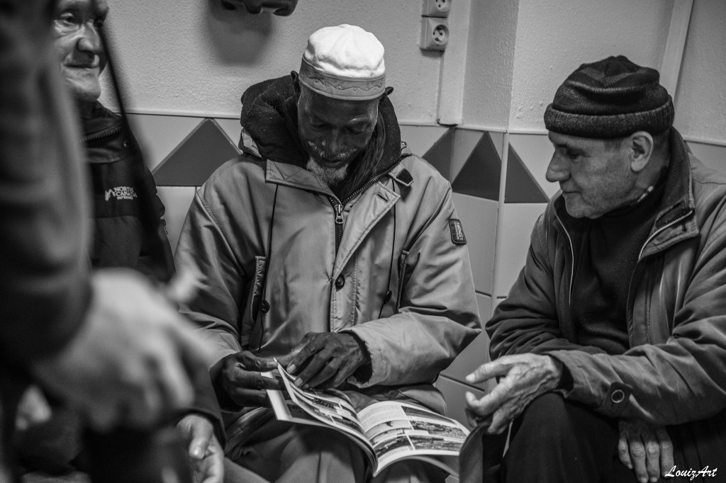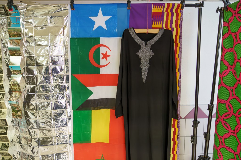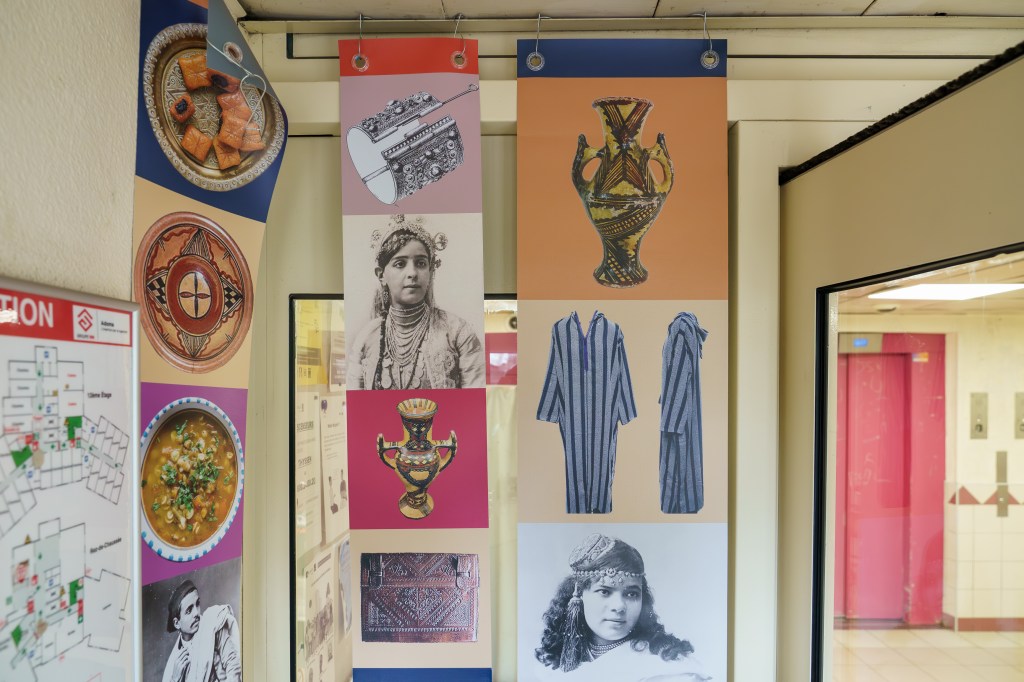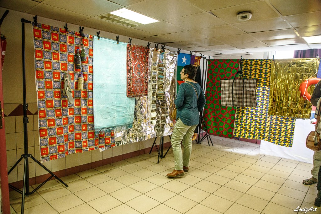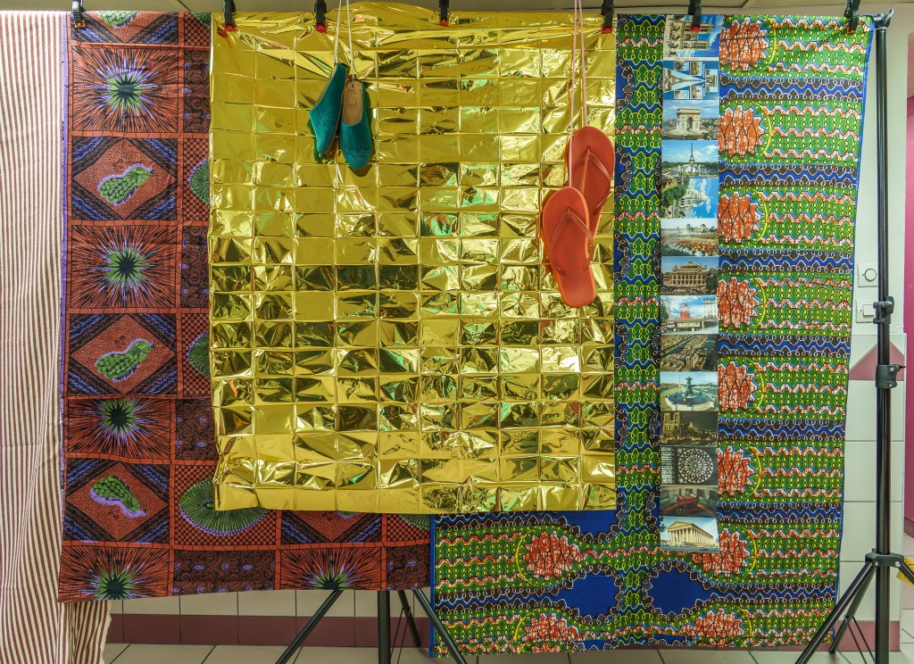 Pendant plusieurs mois nous avons rencontré les résidents du foyer Adoma (anciennement Sonacotral), nous avons recueilli leurs témoignages. Les plus anciens dits chibanis, sont essentiellement originaires de la région de Bordj Bou Arreridj en Algérie et certains d’entre eux occupent une chambre du foyer depuis son ouverture en 1971. Il nous a semblé important de restituer leur vécu dans le quartier des Tarterêts alors que le foyer allait être démoli. C’est sous la forme d’un roman-photo que nous avons retracé leurs vies de travailleurs migrants, leurs histoires familiales, leurs façons d’occuper le territoire, etc. Aux récits de leurs migrations, nous avons ajouté ceux des résidents qui sont arrivés d’Afrique subsaharienne dans les années 80-90 pour des raisons économiques, puis ceux des réfugiés politiques à partir des années 2000. Lors de la restitution, de la présentation de notre publication, nous avons exposé des installations évocatrices de leurs parcours et de leurs espoirs fondés en l’exil : forme de mood board en 3 dimensions composé de tissus, de vêtements, d’objets personnels, de cartes, etc. Pour mettre des mots et des images sur des ressentis, nous avons aussi fait dialoguer des citations avec des œuvres d’art engagées.