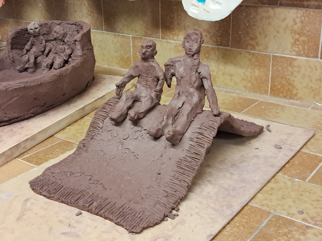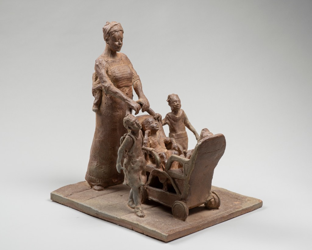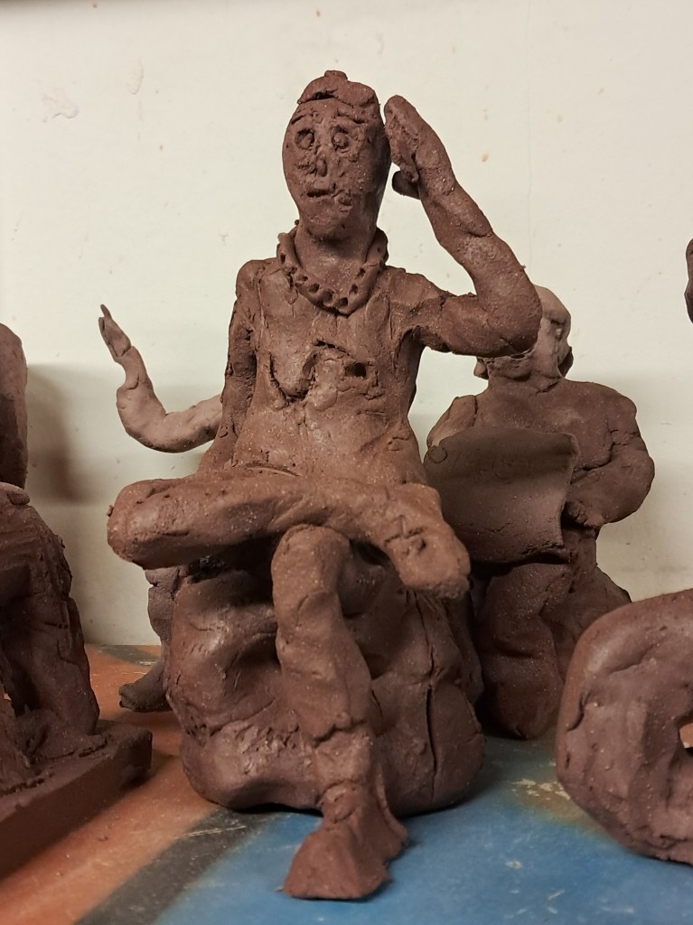- des scènes de vie, des sculptures en ronde-bosse réalisées en modelage à partir d’une boule de terre.
