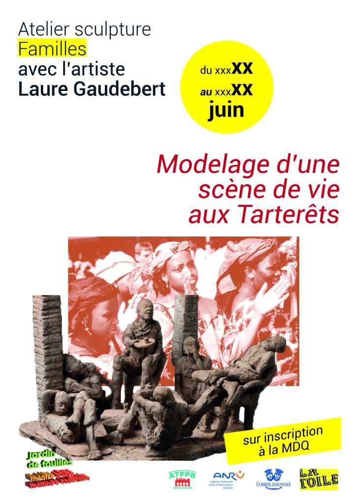 Création d’une œuvre artistique collaborative en grès, un vaste terrain de fouille, une reconstitution du vécu aux Tarterêts du paléolithique à nos jours. Un projet conçu et réalisé avec les habitants du quartier autour de Laure Gaudebert, sculpteure en résidence aux Tarterêts pendant un an.