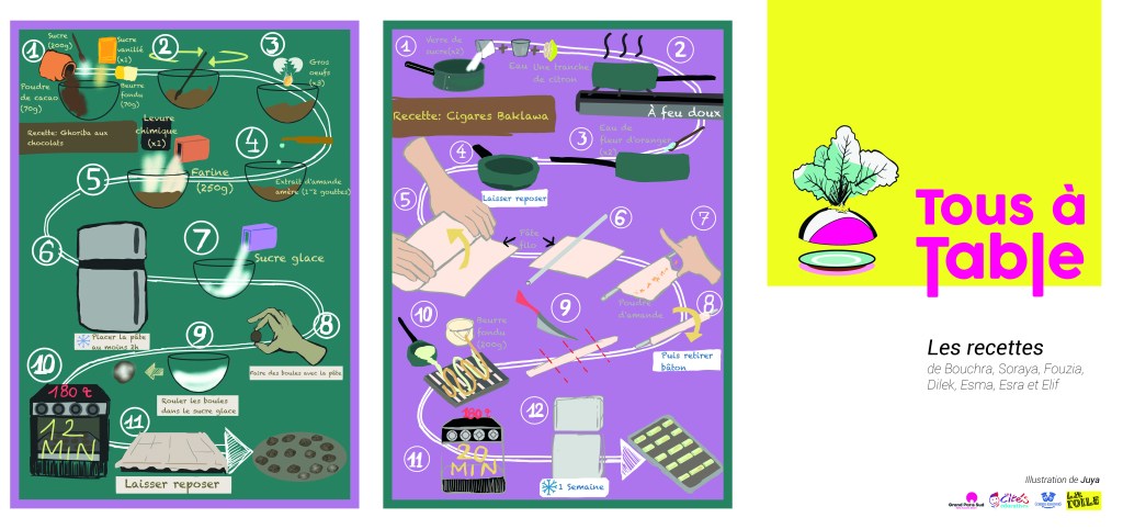 Un groupe de femmes du quartier des Tarterêts nous a partagé ses recettes favorites. Plats qu’elles ont cuisinés avec les classes SEGPA du collège, pour les transmettre ensuite aux enfants de deux classes de CM2 de différents quartiers.